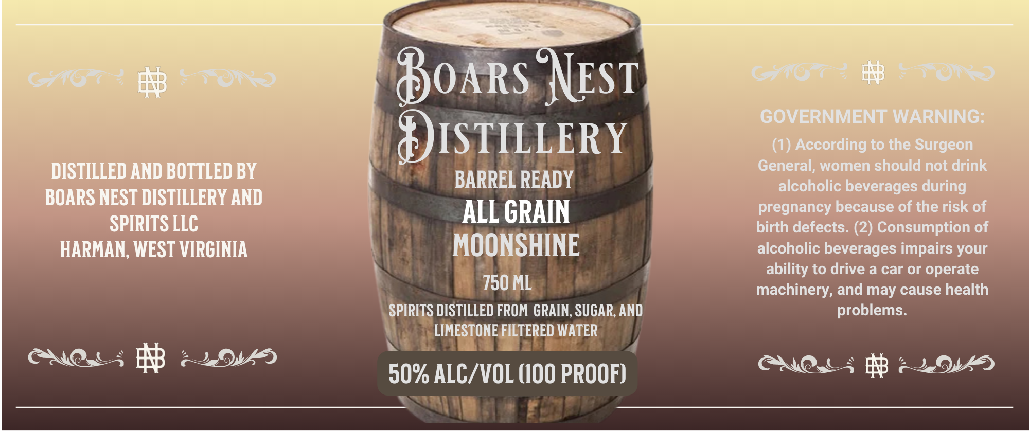BOARS NEST DISTILLERY BARREL READY ALL GRAIN MOONSHINE
