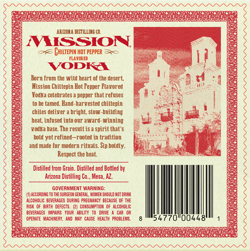 Tasting Notes (from label)“Born from the wild heart of the desert, Mission Chiltepin Hot Pepper Flavored Vodka celebrates a pepper that refuses to be tamed. Hand-harvested chiltepin chiles deliver a bright, slow-building heat, infused into our award-winning Vodka base. The result is a spirit that's bold yet refined-rooted in tradition and made for modern rituals.”