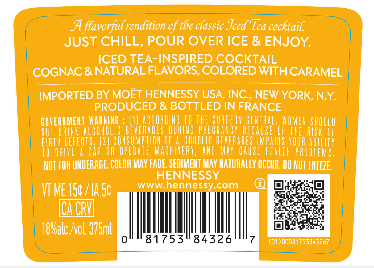 A ready-to-serve iced tea-inspired cocktail made with Cognac and natural flavors, colored with caramel. Simply chill, pour over ice, and enjoy.