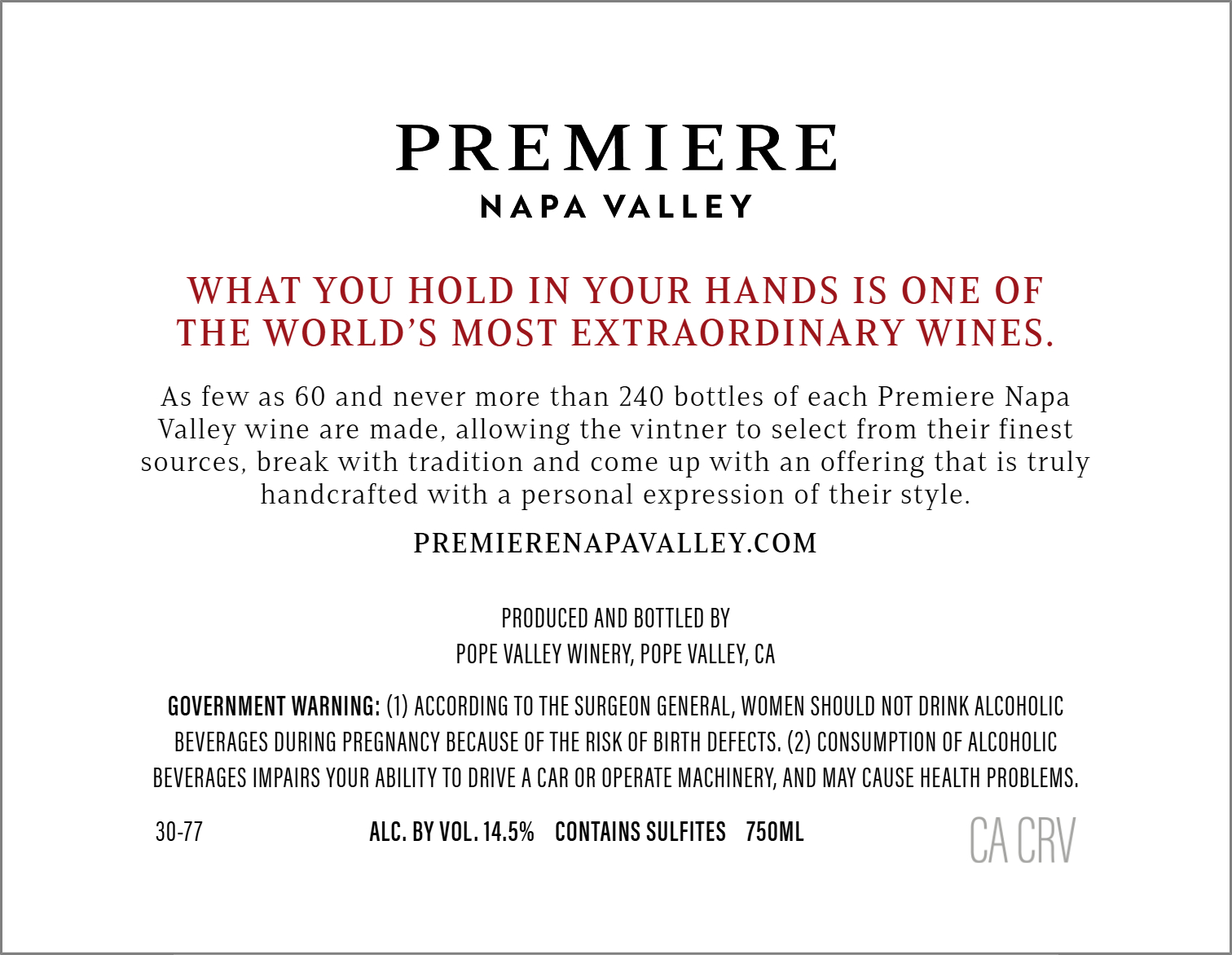 PREMIERE NAPA VALLEY POPE VALLEY WINERY