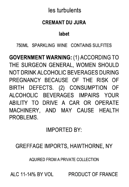 Les Turbulents Crémant du Jura is a French sparkling wine from the Jura region, produced using traditional méthode champenoise techniques. This 750mL bottle offers a crisp, elegant sparkling experience with an alcohol content of 11-14% by volume.