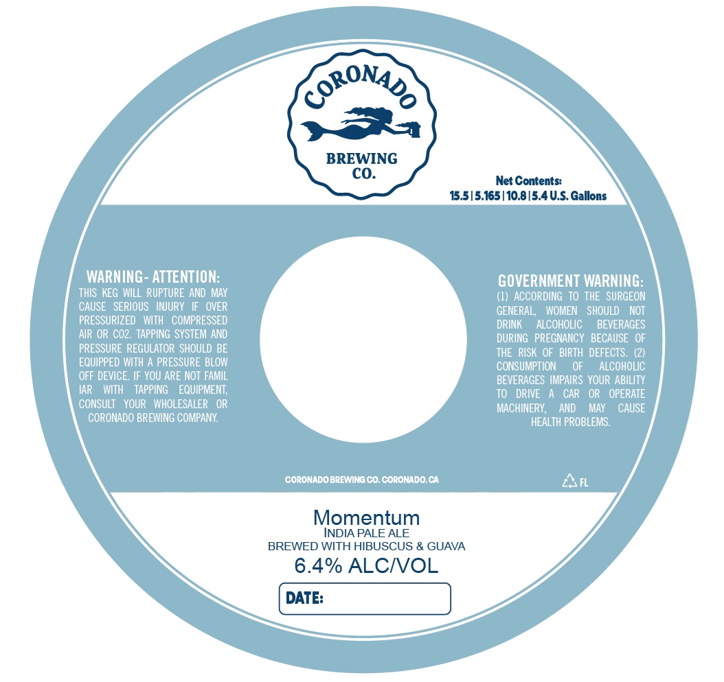 Momentum is an India Pale Ale brewed with hibiscus and guava, offering a fruit-forward twist on the classic IPA style. Produced by Coronado Brewing Company in California at 6.4% ABV.