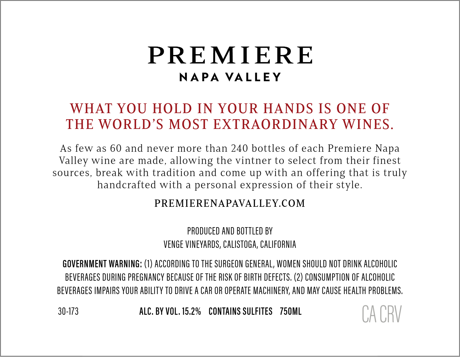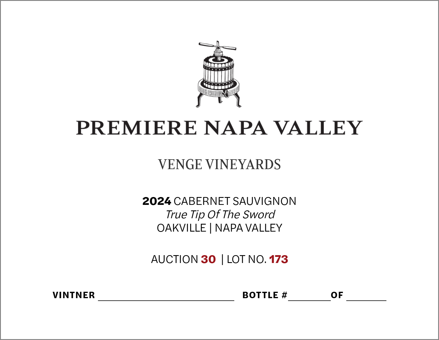 PREMIERE NAPA VALLEY VENGE VINEYARDS TRUE TIP OF THE SWORD
